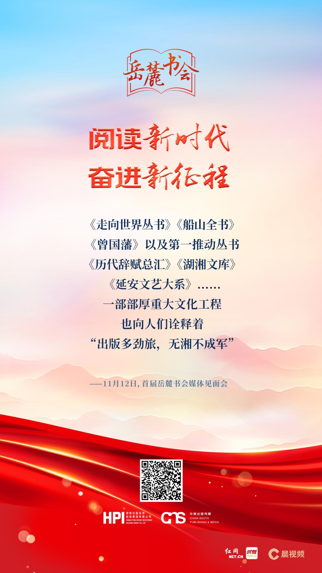 記者:我們注意到,11月11日湖南出版集團(tuán)第三次黨代會才閉幕,今天就召開首屆“岳麓書會”媒體見面會,這是出于怎樣的考慮?彭玻:當(dāng)前全國上下都在以各種方式宣傳、學(xué)習(xí)、貫徹落實黨的二十大的精神。11月9日到11日,湖南出版投資控股集團(tuán)有限公司第三次黨代會勝利召開。本次黨代會的主題是全面學(xué)習(xí)貫徹落實黨的二十大精神,全力推動湖南出版高質(zhì)量發(fā)展,為建設(shè)世界一流新型主流出版?zhèn)髅郊瘓F(tuán)而團(tuán)結(jié)奮斗。而今天我們在這里和媒體的記者們見面,發(fā)布我們即將在全省上下推動的一項重要活動,那就是首屆“岳麓書會”。這次活動本身也是湖南省貫徹落實黨的二十大精神的一個重要組成部分。我們想通過各種各樣的閱讀活動,讓“愛讀書”“會讀書”“讀好書”在三湘大地真正形成一種社會風(fēng)尚,讓黨的二十大的精神在全省上下真正落實落細(xì)。習(xí)近平總書記在黨的二十大報告當(dāng)中明確提出,要以中國式現(xiàn)代化全面推進(jìn)中華民族偉大復(fù)興。什么是中國式現(xiàn)代化?一個重要方面就是物質(zhì)文明和精神文明相協(xié)調(diào),既要物質(zhì)富足,也要精神富有,要實現(xiàn)物的全面豐富和人的全面發(fā)展。這就為包括出版在內(nèi)的文化產(chǎn)業(yè)發(fā)展指明了方向,也提出了新的更高要求。在時代的浪潮中,出版要有大擔(dān)當(dāng),更要有大作為。