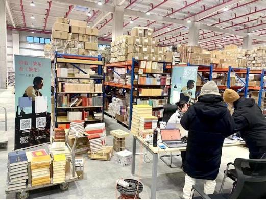 ▲2024北京圖書訂貨會期間,岳麓書社在河北涿州圖書倉庫進(jìn)行直播。