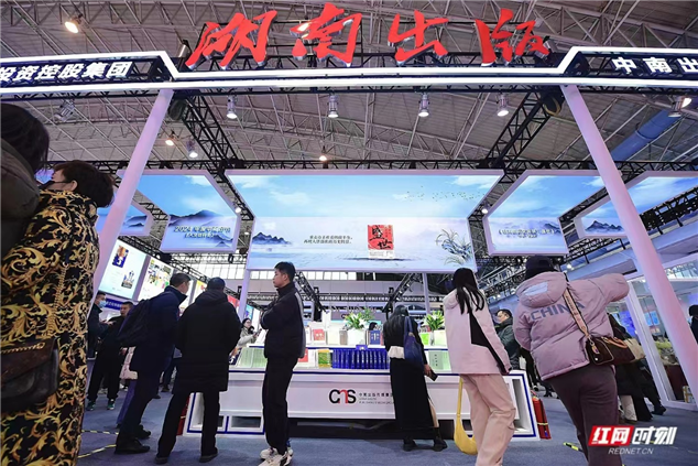 本屆訂貨會(huì),湖南出版展臺(tái)凸顯“文化+科技”的深度融合。在精品書臺(tái)上方的天幕屏上,一幅輝映湖湘文化神韻的人文山水長卷徐徐展開,滾動(dòng)播放著2024年度“中南好書”的書封和簡介。設(shè)計(jì)布展方中南國際會(huì)展相關(guān)負(fù)責(zé)人告訴記者,這是通過“交互藝術(shù)天幕”等數(shù)字化設(shè)施,采用前沿?cái)?shù)字技術(shù),營造出的沉浸式文化空間,多層次呈現(xiàn)了湖南出版文化與科技融合發(fā)展的新成就、新風(fēng)貌。